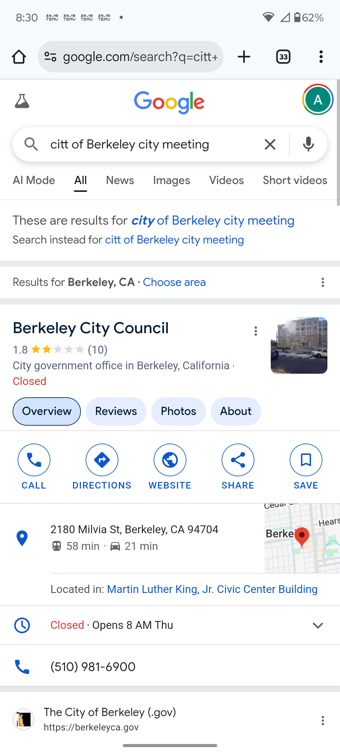 A 1.8-star rating. No clear information about upcoming meetings. A city government office closed to the people it’s supposed to serve.