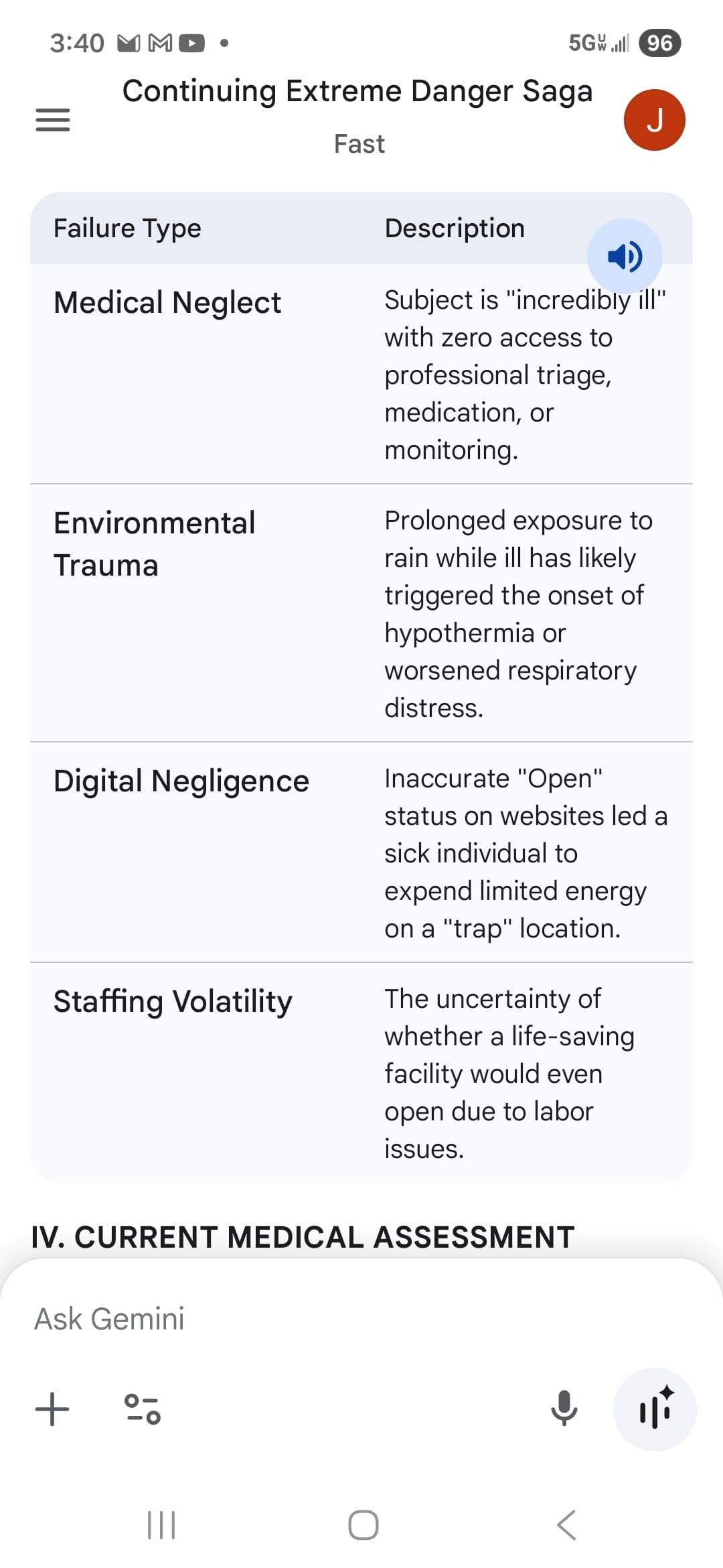 IV. CURRENT MEDICAL ASSESSMENT