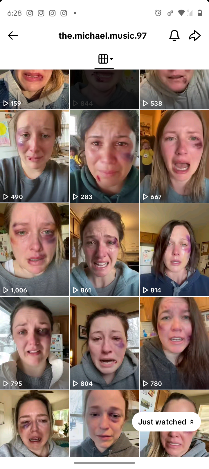 Women film themselves with bruises on their faces. Black eyes. Swollen lips. Blood. Shaking hands. Children in frame who are also being hit. They look directly into the camera and say, plainly, desperately: