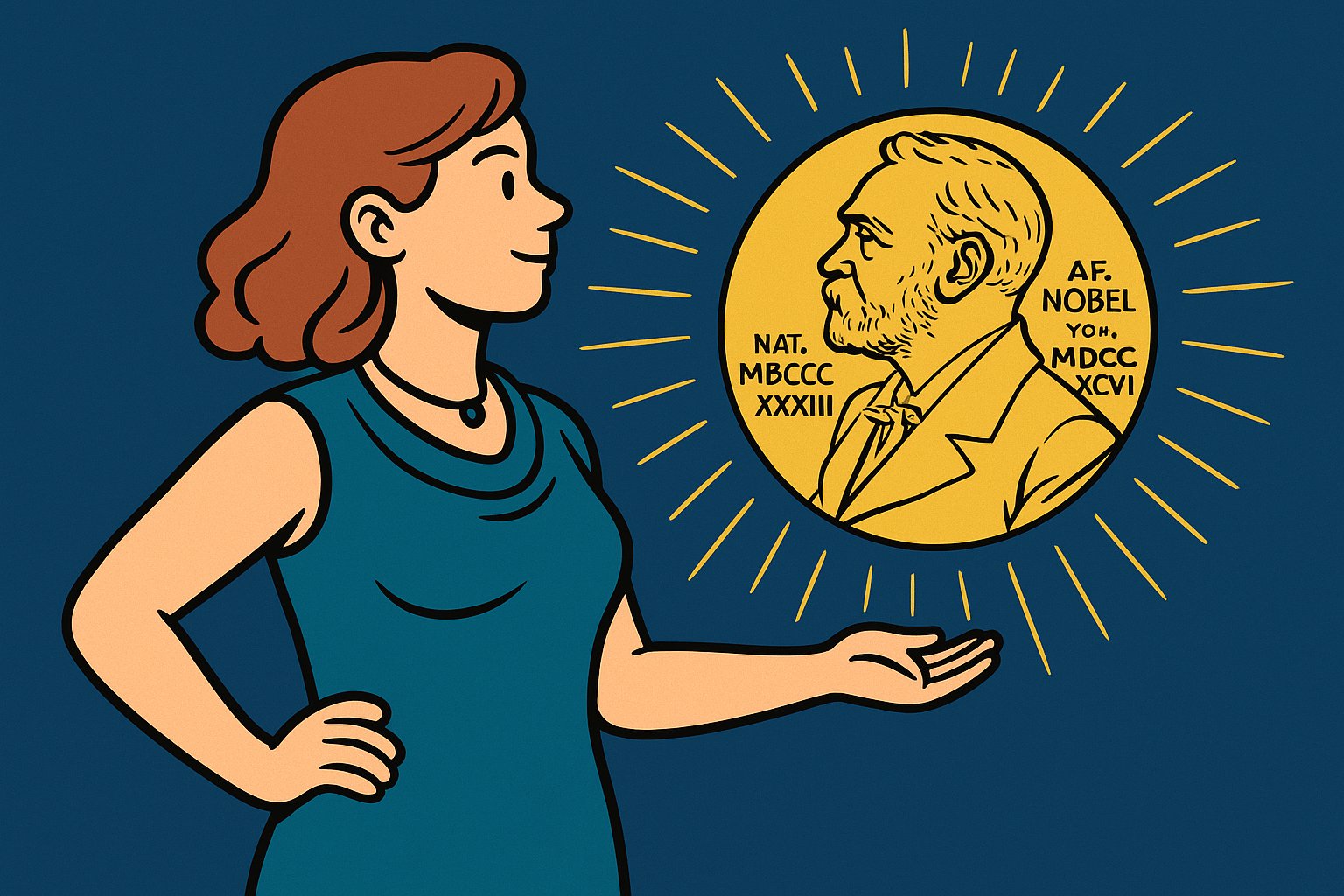(A woman stands tall beside a glowing Nobel medal—a symbol of the peace she fights for but will never be awarded, because she tells the truth about patriarchy.)